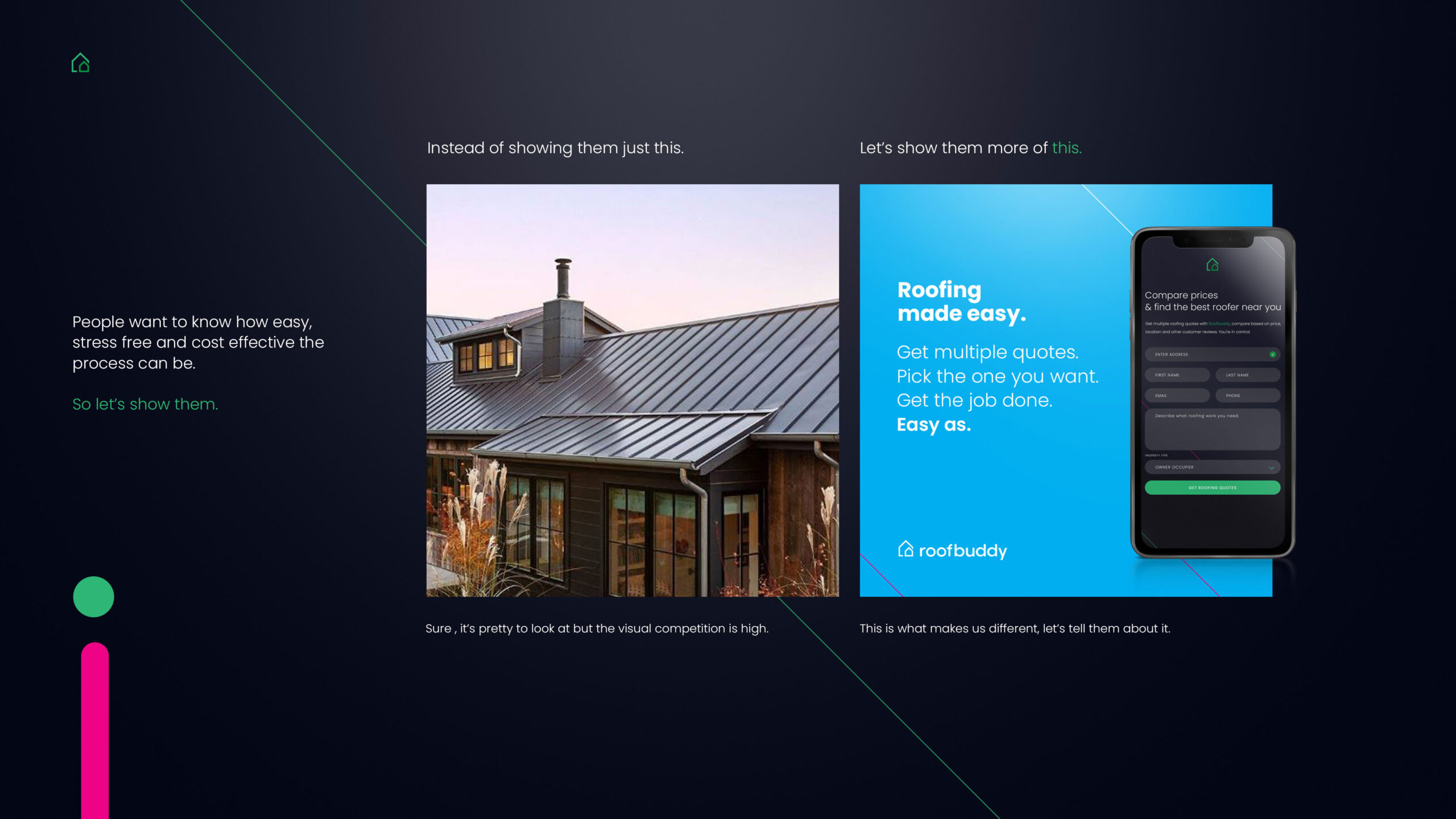 RoofBuddy was experiencing exceptional growth and needed their brand to reflect that by updating it’s entire visual identity. We worked exclusively with the team over 24 months to totally overhaul every visual aspect of the business.