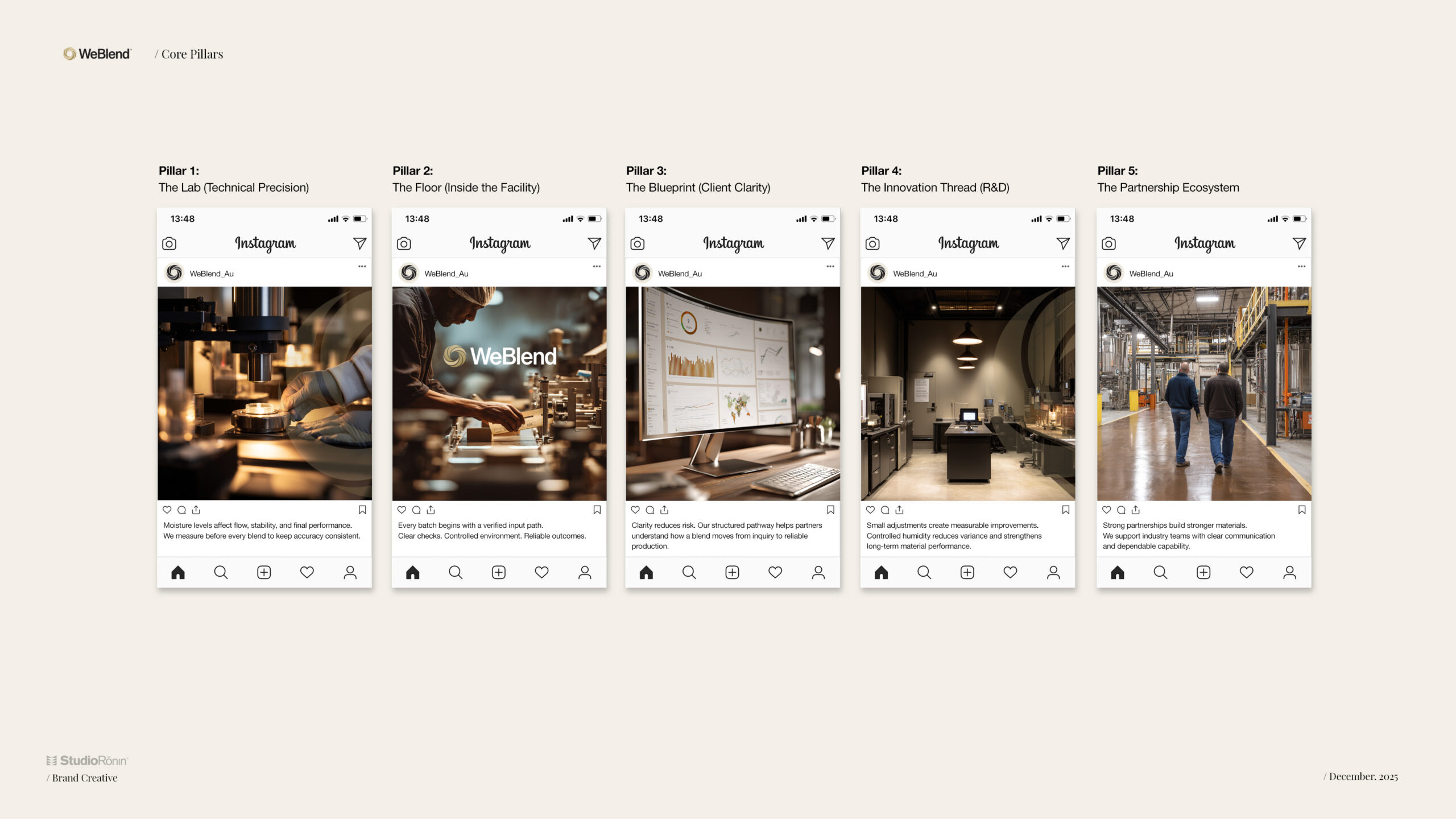 We created a complete brand, website and visual asset system for WeBlend, establishing a clear and recognisable presence that communicates their process and product with confidence. The result is a cohesive identity that supports credibility, consistency and growth across every touchpoint.